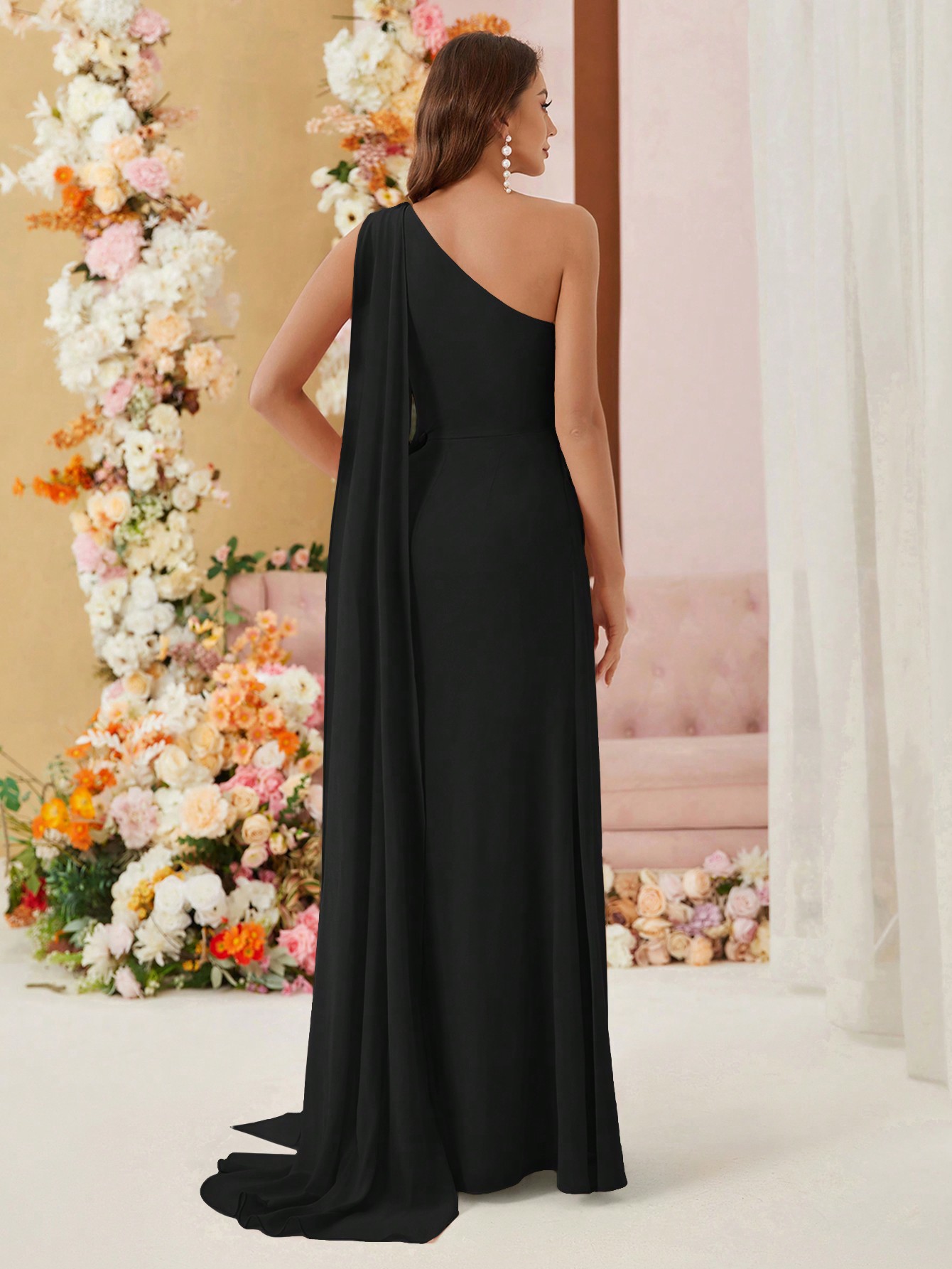 The Cecilia Gown is elegant, classic, and timeless. This gorgeous design is perfect for bridesmaids, as a wedding guest dress or a spring gala. Featuring one shoulder strap, fit and flare design and a flowing shoulder piece. This dress is fully lined with chiffon overlay. Flow elegantly into your next event in the Cecilia Gown.