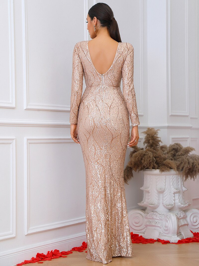 The Jovana Gown is a stunning crystal gown with a mini satin underdress and sheer overdress. This floor length gown features hand embroidered sequins and beads intricately designed in a geometric pattern. This gown features an illusion V neckline and plunging open back. With thousands of little sequins and beads, this gown is perfect for the lady that wants to sparkle all night long at her prom, homecoming, year 12 formal or gala.
