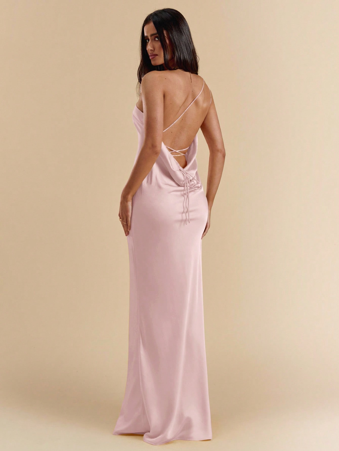 The Martina Dress is a sleek, one shoulder satin slip gown designed to flatter from every angle. Featuring a soft draped neckline, delicate spaghetti straps, and an elegant lace-up open back, it flows effortlessly to a full-length silhouette with a subtle sheen. Chic, timeless, and feminine, it’s a perfect choice for bridesmaids, formal celebrations, or any special occasion that calls for understated elegance.