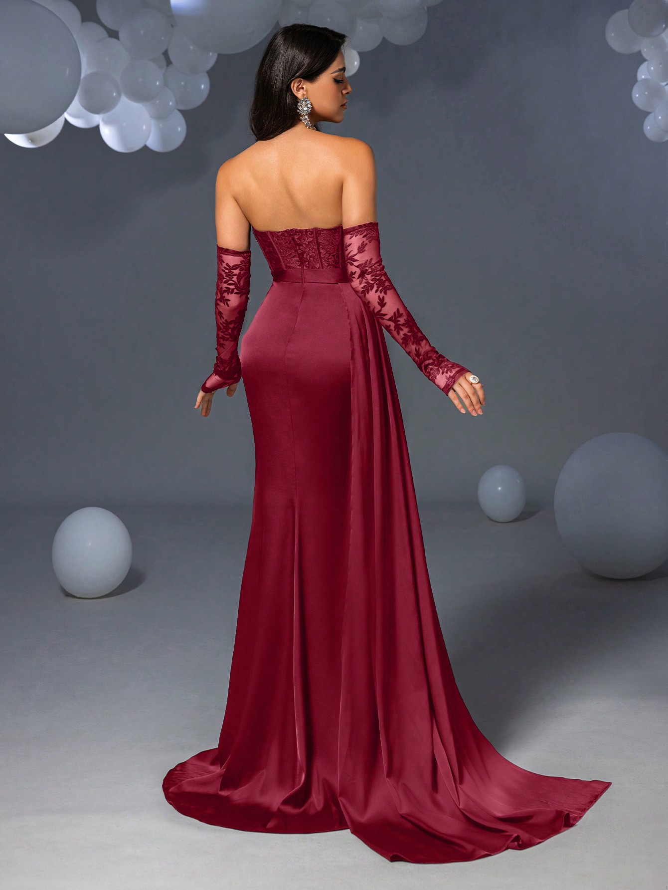 The Monaco Gown combines classic and contemporary elements for a truly stunning look! It features optional delicate lace sleeves that add a touch of romantic charm, while the strapless lace bodice with built-in padding provides both structure and support. The flowing satin skirt drapes gracefully, enhanced by a daring side leg split. This dress has a rear zip and no stretch, so we recommend ordering 1 size up.