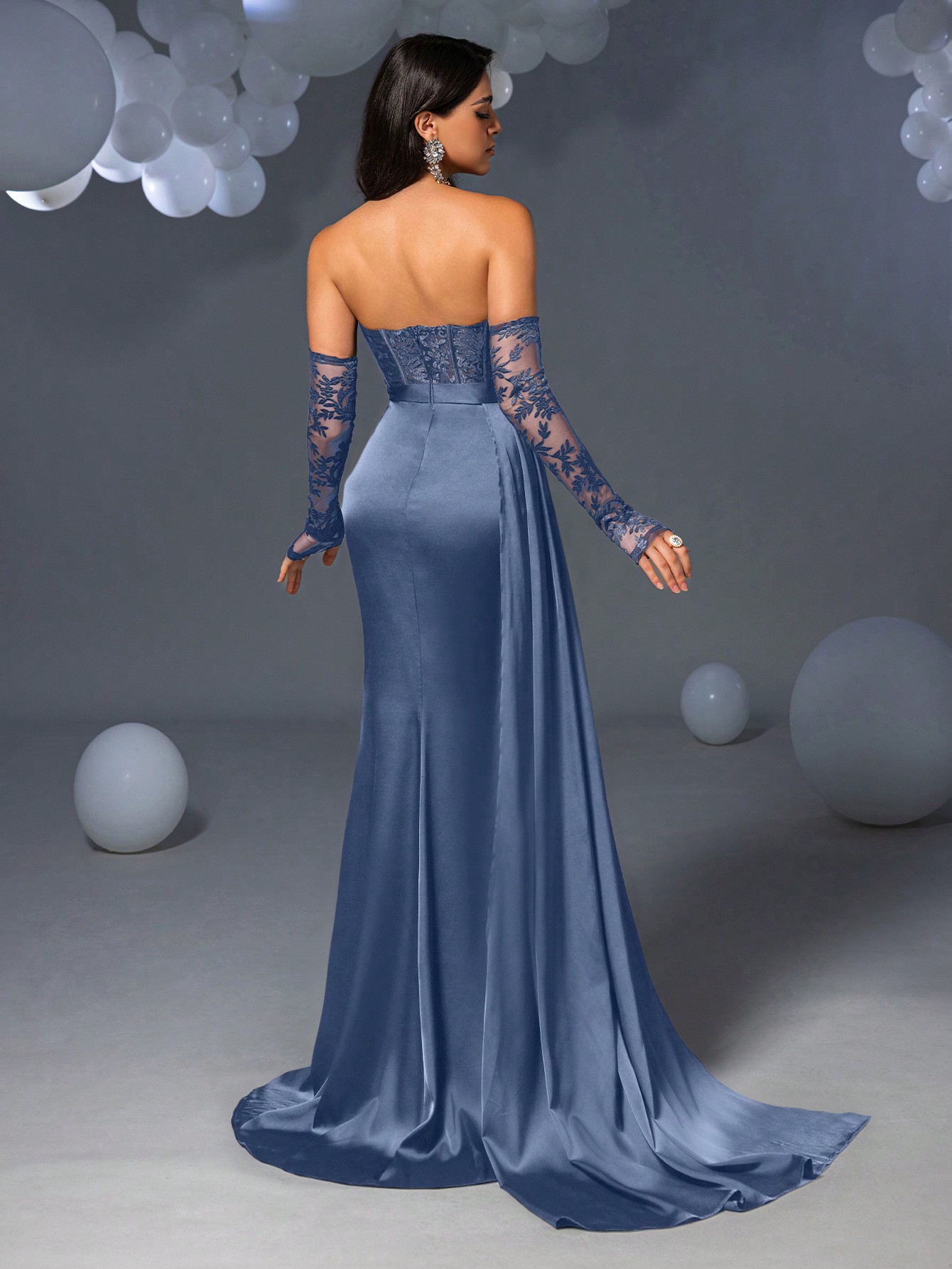 The Monaco Gown combines classic and contemporary elements for a truly stunning look! It features optional delicate lace sleeves that add a touch of romantic charm, while the strapless lace bodice with built-in padding provides both structure and support. The flowing satin skirt drapes gracefully, enhanced by a daring side leg split. This dress has a rear zip and no stretch, so we recommend ordering 1 size up.