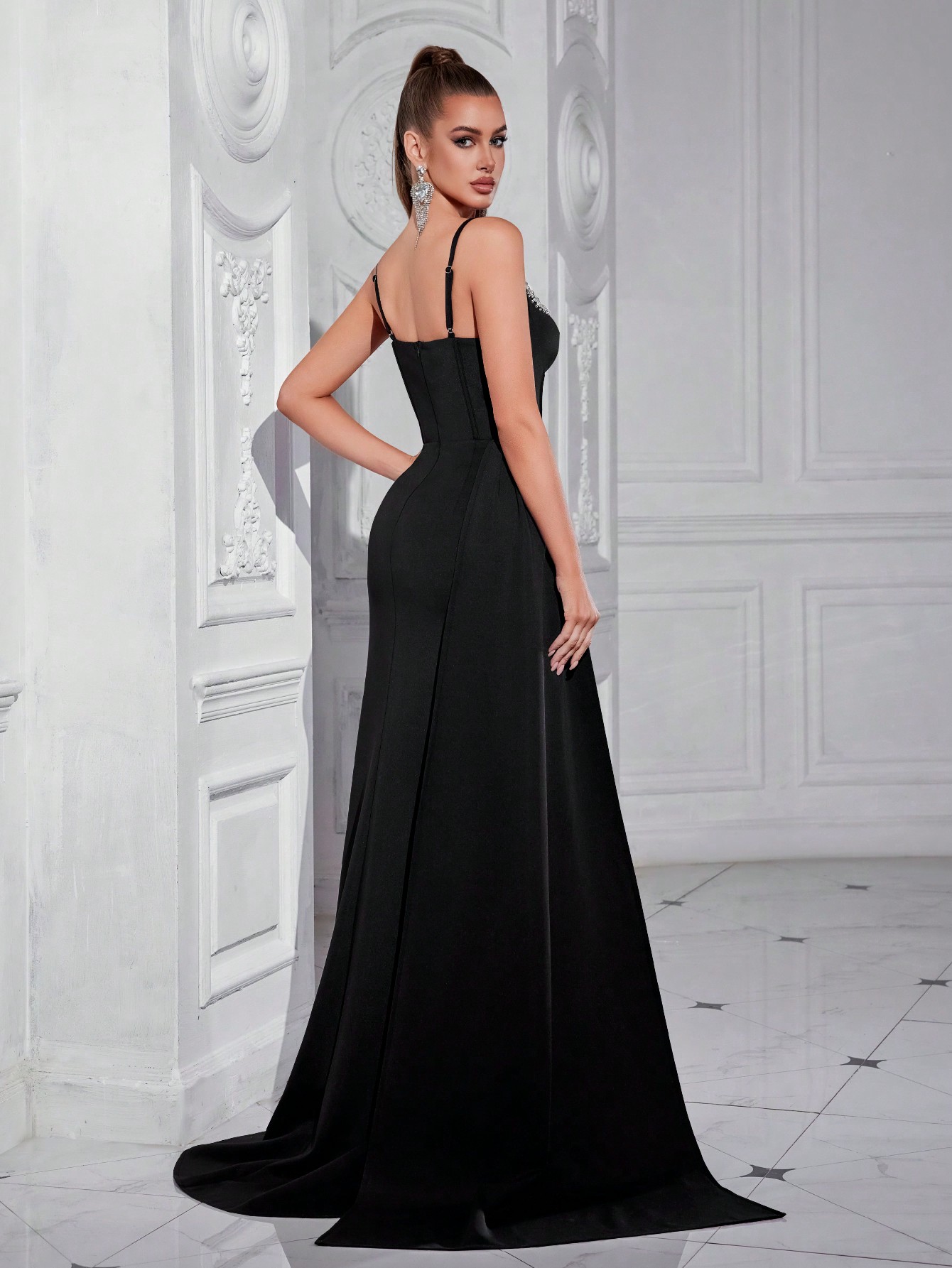 The Rosana Gown is giving us Queen vibes! Perfect as a wedding dress for your glamorous wedding! Designed with a corset bodice to accentuate your curves, a side leg split, rushed side detailing and stunning neckline embelishments. This dress has adjustable straps and a rear zip. The fabric has a little stretch.
