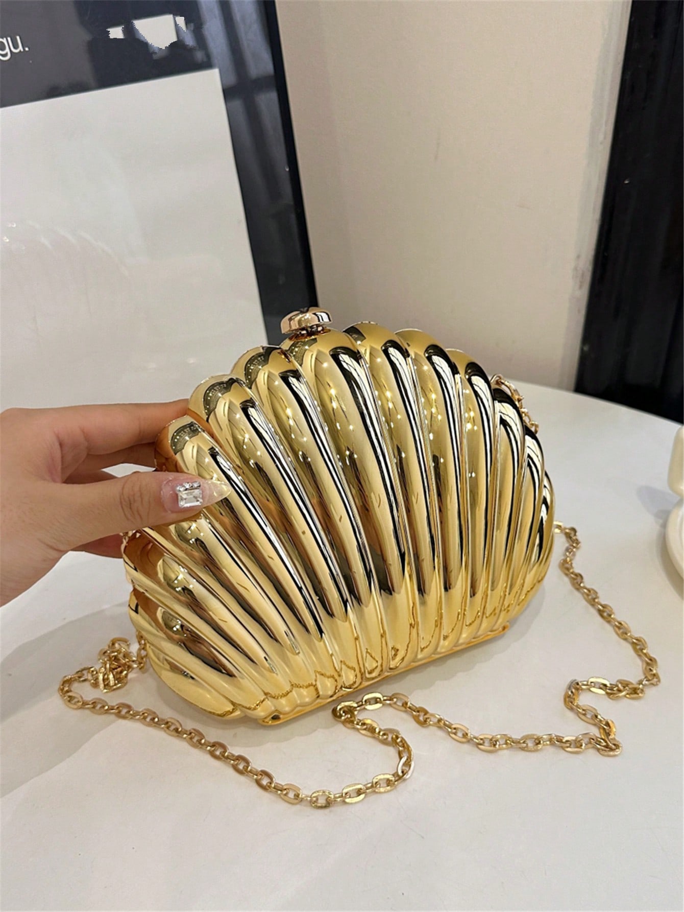 If you are looking for an elegant clutch to go with your couture gown then the Marble Clutch is perfect for you. This acrylic oval shaped purse has been beautifully designed with two gold chains, an easy to open clasp and enough space to fit your most loved items.